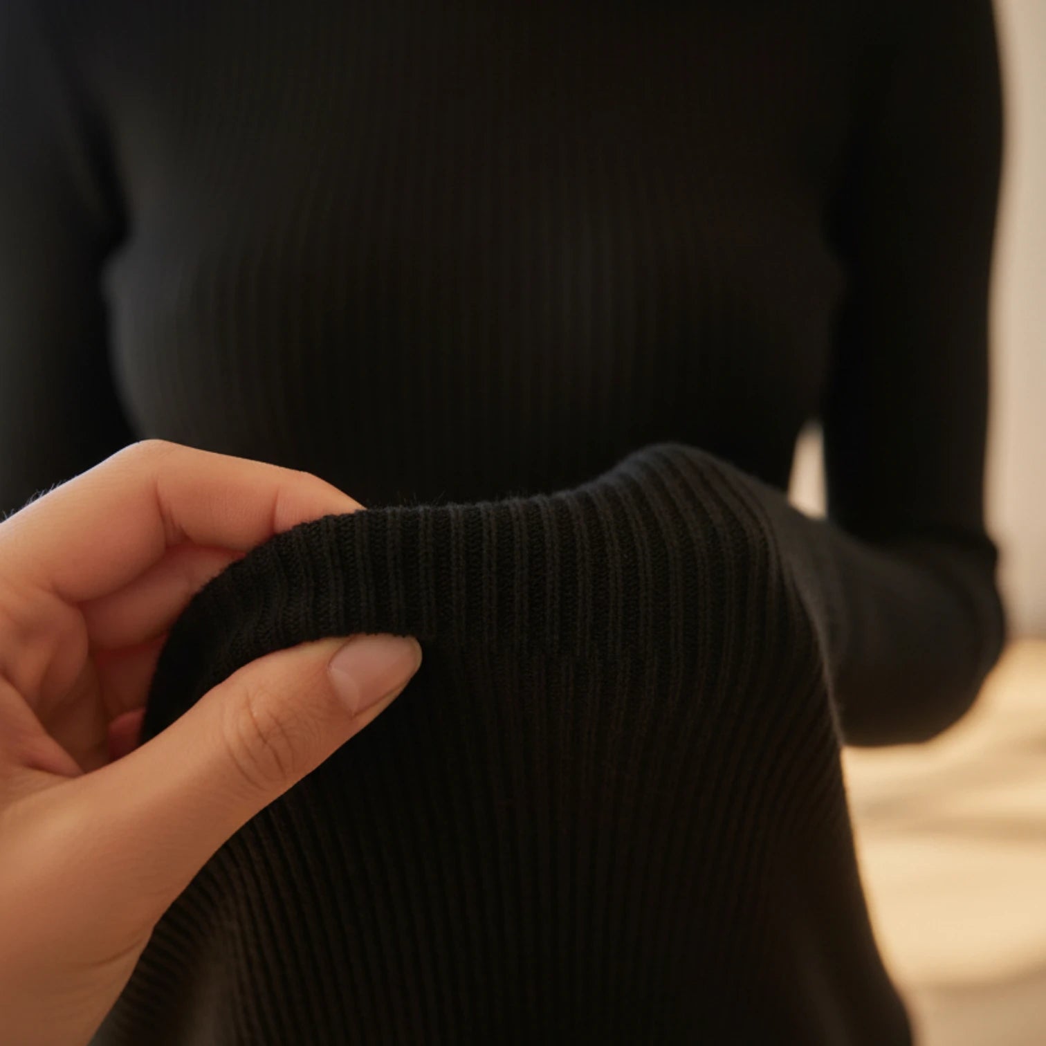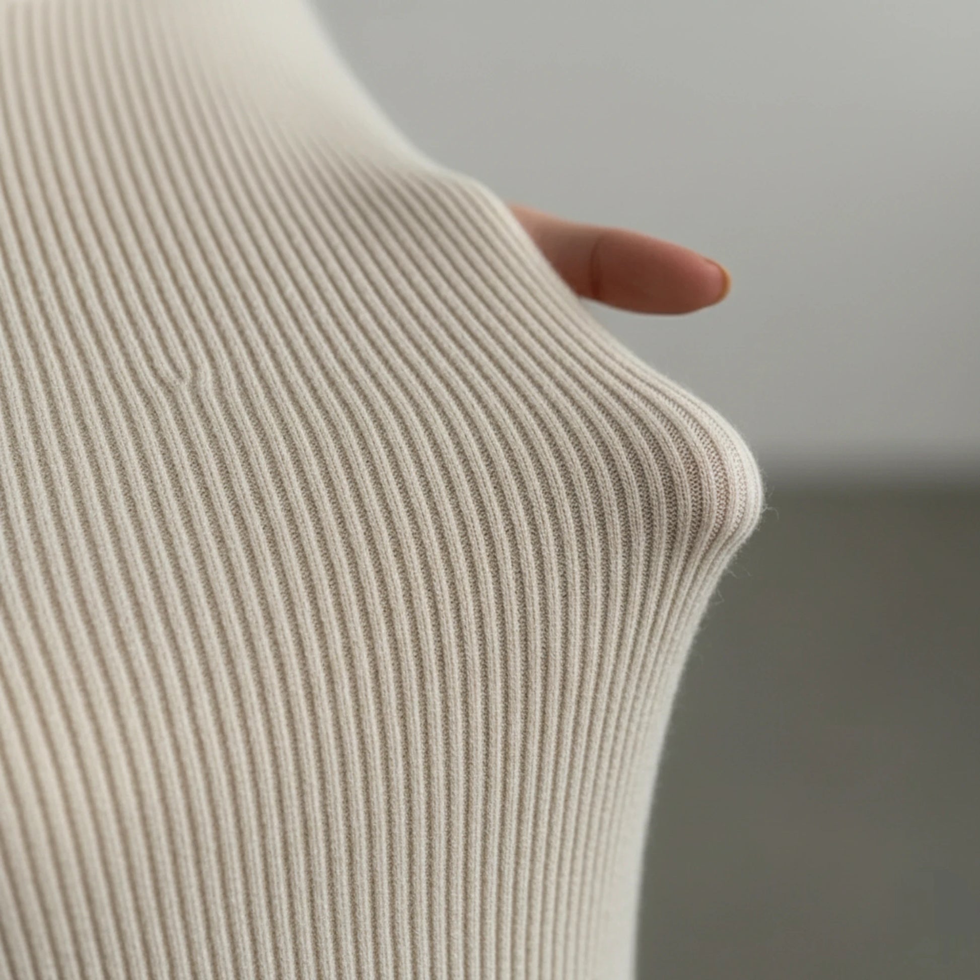 Women's Slim Fit Long Sve Knitted Dr High Collar Midi Dr Sli Commute Wear Polyester Fabric Spring Season