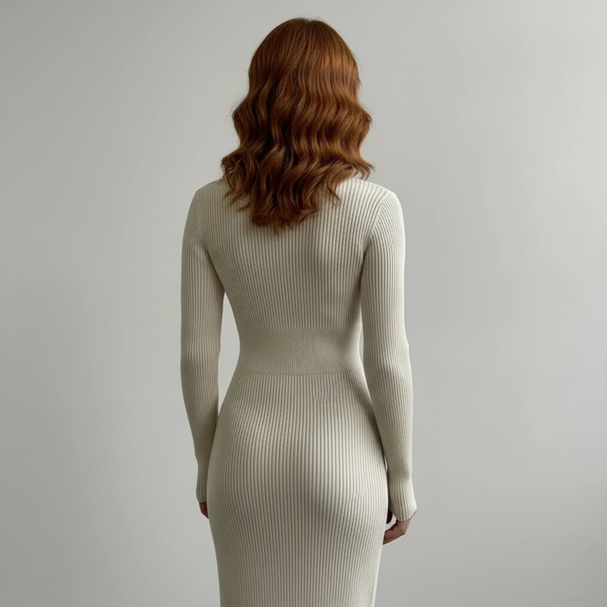 Sexy Elegant Knitted Midi Dress Woman Aesthetic Clothing Autumn Winter Streetwear Long Sleeve Bodycon Evening Dresses for Women