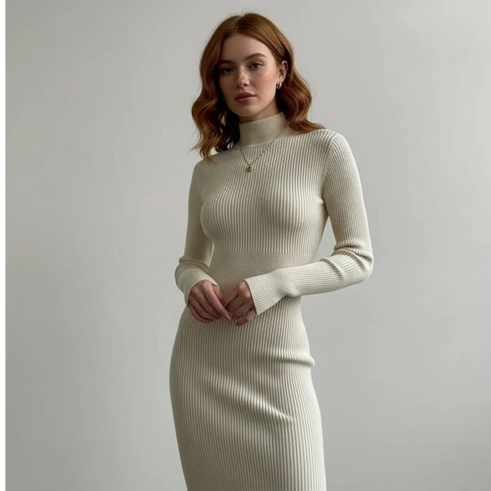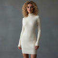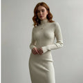 Women's Slim Fit Long Sve Knitted Dr High Collar Midi Dr Sli Commute Wear Polyester Fabric Spring Season