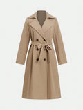 Advanced temperament women's fashion double breasted waist cinched British style mid length long sleeved windbreaker jacket