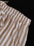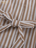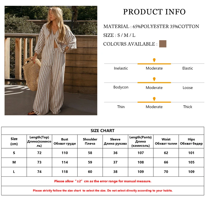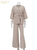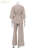 Type1: Fashion Loose Brown Stripe Trousers Set 2 Piece Woman