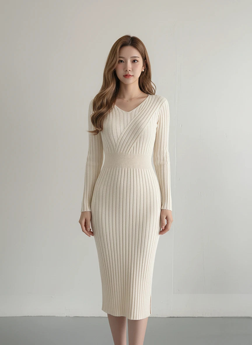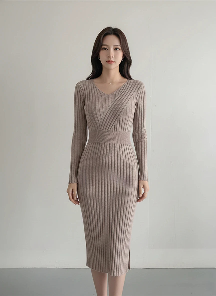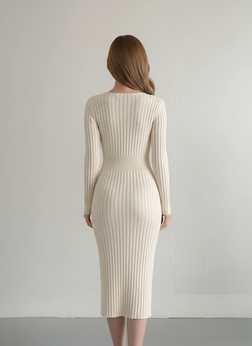 Sweater Knit Dress For Women Vintage Knitting Package Hip Elegant Lady Knitwear Elasticity Women's Autumn Winter Midi Dresses