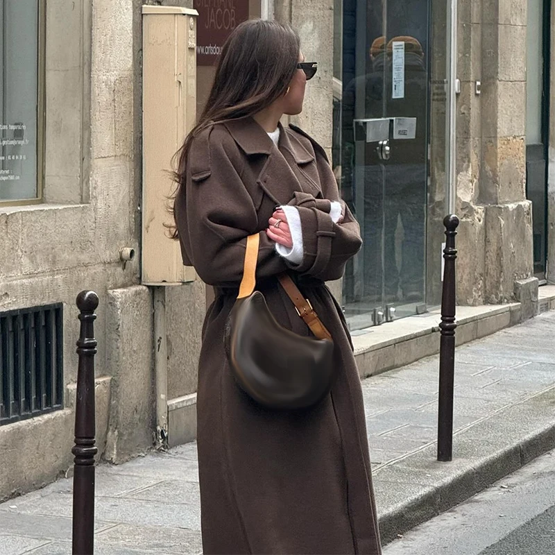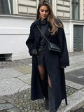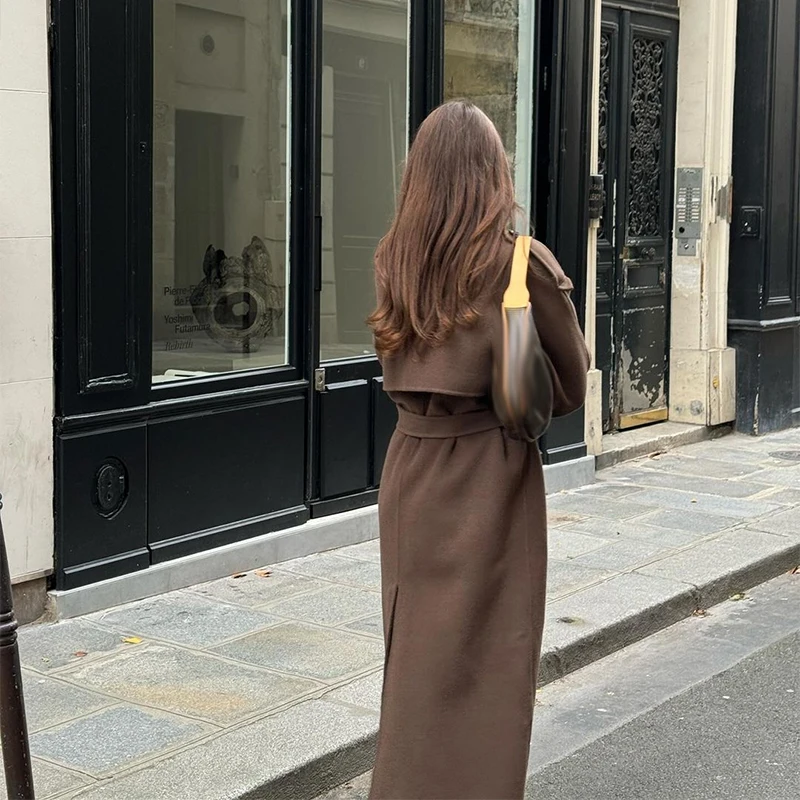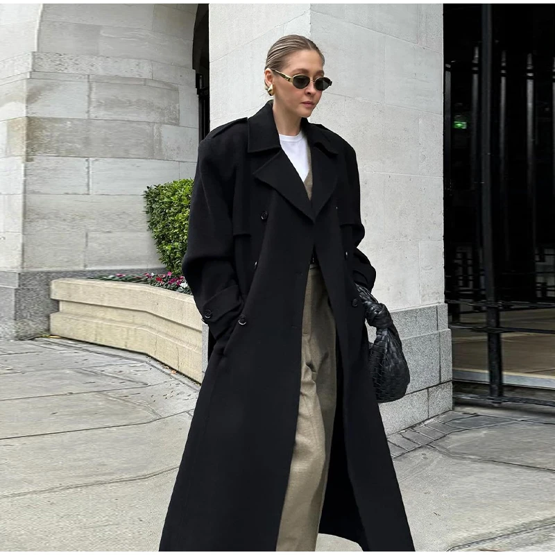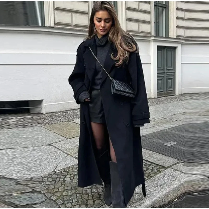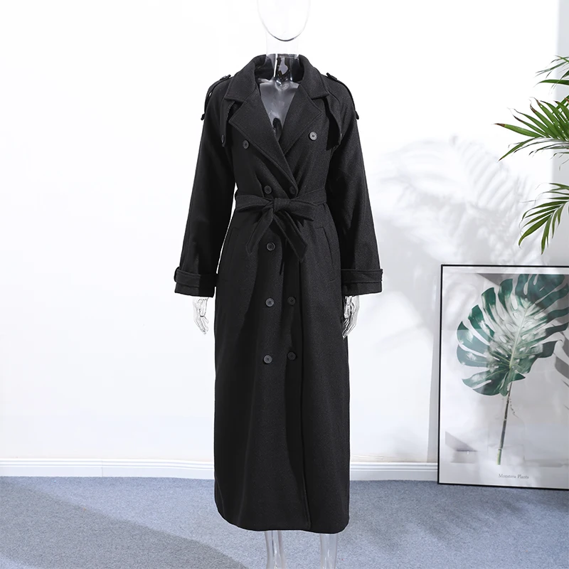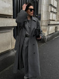 Woolen Breasted Long Coat Women Lapel Double Breasted Casual Pocket Chic Elegant Outwear Autumn Winter Street Lady Overcoat
