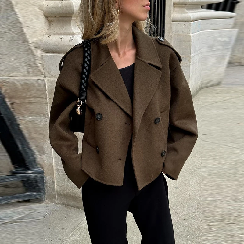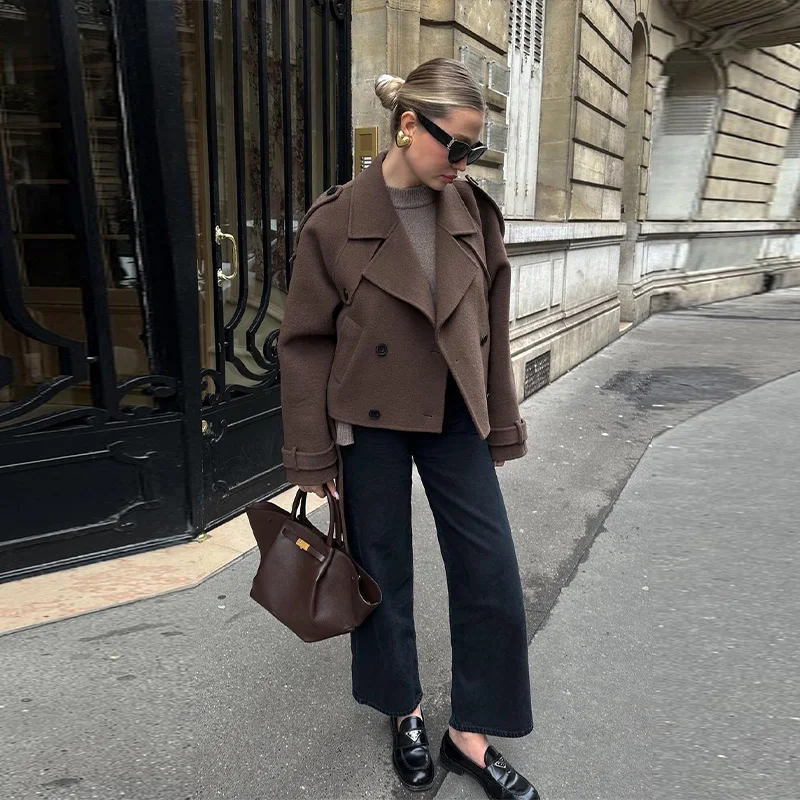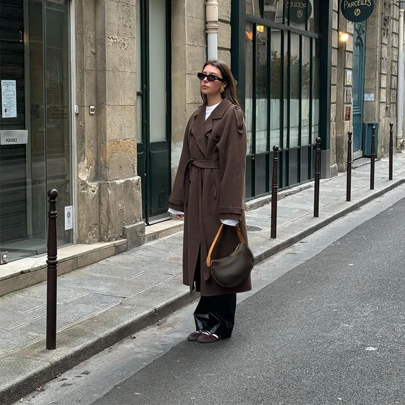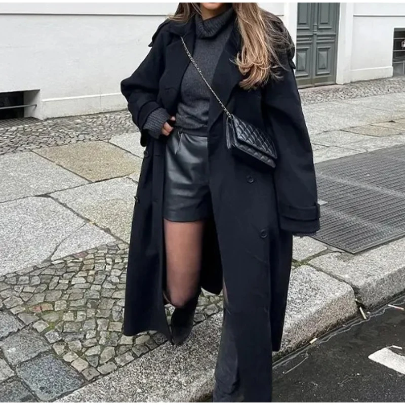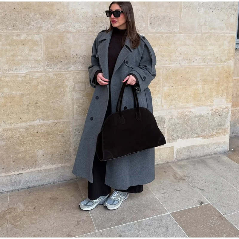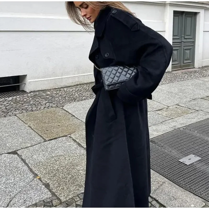 Woolen Breasted Long Coat Women Lapel Double Breasted Casual Pocket Chic Elegant Outwear Autumn Winter Street Lady Overcoat